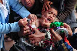 MÉXICO, D.F., 22MAYO2015.- Se llevo a cabo una jornada de vacunación y desparasitación al interior de la Cámara de Diputados para los niños que acuden al Centro de Desarrollo Infantil (CENDI). La mayoría de los infantes sufrieron un pánico rompiendo en llanto por el miedo a las agujas y el dolor que les causan los piquetes. El CENDI es un servicio de estancia infantil de la Cámara de Diputados que incluye alimentación y vigilancia médica para los hijos menores de 6 años de las madres trabajadoras o de padres trabajadores viudos, divorciados o separados que tengan la custodia de sus hijos, otorgando prioridad a los hijos de los trabajadores sindicalizados. FOTO: DIEGO SIMÓN SÁNCHEZ /CUARTOSCURO.COM