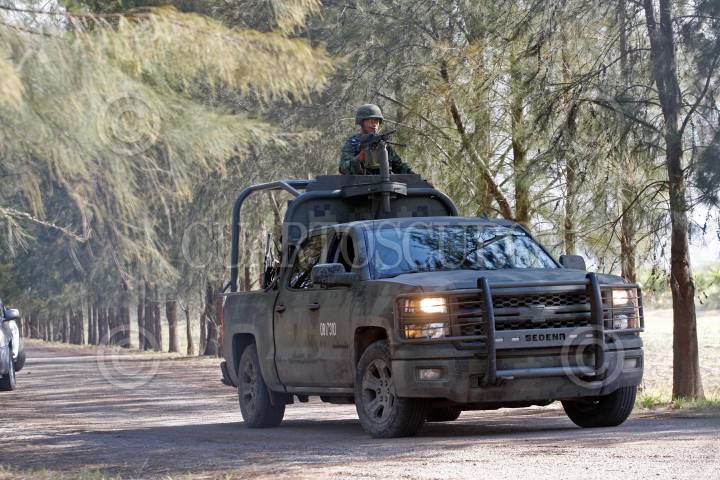 TANHUATO, MICHOACÁN, 22MAYO2015.- En un enfrentamiento entre fuerzas federales y presuntos integrantes de grupos criminales, muy cerca de los límites con Jalisco, se reportan más de 40 muertos, entre ellos un policía federal. En el Rancho del Sol se aseguró decenas de armas largas, cartuchos y granadas, los abatidos pertenecían al cártel Jalisco Nueva Generación, informo el gobierno federal. Aún sin haber una versión oficial el gobernado de Michoacán Salvador Jara, señalo que los policías detectaron una camioneta sospechosa, de la cual les abrieron fuego. El sitio se encuentra acordonado por la PF y el ejército, integrantes del gabinete de seguridad se trasladaron al lugar de los hechos en espera de un parte de los hechos. FOTO: FERNANDO CARRANZA /CUARTOSCURO.COM