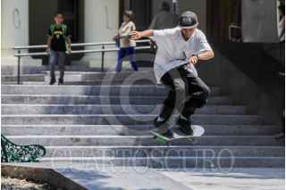 CHILPANCINGO, GUERRERO, 23MAYO2015.- Jóvenes realizan trucos con sus patinetas en el zócalo de esta ciudad, espacio público al que también acuden niños y ancianos. FOTO: JOSÉ I. HERNÁNDEZ /CUARTOSCURO.COM