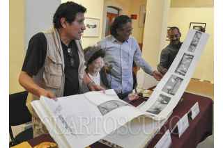 ZACATECAS, ZACATECAS, 24MAYO2015.- Ayer se inauguró la exposición fotográfica “Mónada e infinito” en la Fototeca de Zacatecas. Además se donaron los libros “La representación visual en la era digital” y “Mónada e infinito” de los artitas Gale Lynn y Arturo Rosales. La obra de Gale Lynn surge de la interacción entre sombras y objetos, reales e irreales, construyendo así una tensión entre los objetos, sus proyecciones y las infinitas posibilidades de formas y otros significados. Ambos autores son profesores desde hace 20 años en la Facultad de Artes y Diseño de la UNAM. FOTO: CARLOS SEGURA /CUARTOSCURO.COM