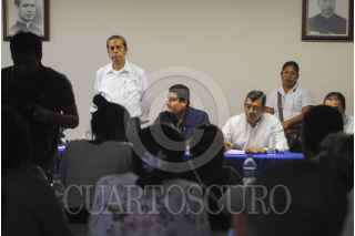 CHILAPA DE ÁLVAREZ, GUERRERO, 24MAYO2015.- El gobernador Rogelio Ortega Martínez, acompañado del presidente municipal Francisco Javier García González; el fiscal general del estado, Miguel Ángel Godínez Muñoz; el secretario general de gobierno, David Cienfuego Salgado, se reunieron con los familiares de los 16 desaparecidos en Chilapa, quienes dijeron al gobernador del estado que le dan 48 horas para localizarlos o ellos buscarán la manera de hacerlo. “A eso nos están obligando”, acusaron. FOTO: JOSÉ I. HERNÁNDEZ /CUARTOSCURO.COM