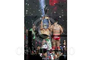 MÉXICO, D.F., 24MAYO2015.- Rey Misterio Jr. dedicó la pelea al hijo del Perro Aguayo después de haber triunfado en el Primer Mundial de Lucha Libre Victoria en el Palacio de los Deportes. Es la primera ocasión que un evento deportivo de este tipo se presenta en México, en donde lucharán enmascarados nacionales, de Estado Unidos, Japón, Puerto Rico, Reino Unido y Sudáfrica. El torneo estuvo conformado por 8 tercias: México Dream Team, integrado por Rey Misterio Jr., Myzteziz y Patrón Alberto; México AAA con Psycho Clown, Texano Jr. y el Hijo del Fantasma; y México Leyendas Independientes, con Blue Demon Jr., Dr. Wagner Jr. y Solar. FOTO: JOAQUÍN MURRIETA /CUARTOSCURO.COM