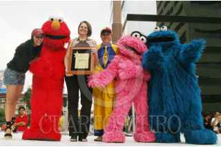 MÉXICO D.F. 28ABRIL2006.- Marie Cecile Girard, titular de Licencias de América Latina de Plaza Sesamo, recibió una placa conmemorativa por parte de las autoridades de la Plaza de las Estrellas. FOTO: Diego Gallegos/CUARTOSCURO.COM