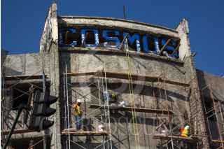 MÉXICO, D.F., 25MAYO2015.- Continuan los trabajos de remodelación del Cine Cosmos el cual fue construido en 1948 en la esquina de avenida México- Tacuba y Circuito Interior, que está en ruinas desde hace 18 años. Se convertirá en un centro comunitario, deportivo y cultural, con espacios para el esparcimiento y conservará el nombre del cine. FOTO: ENRIQUE ORDÓÑEZ /CUARTOSCURO.COM