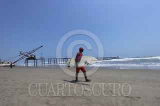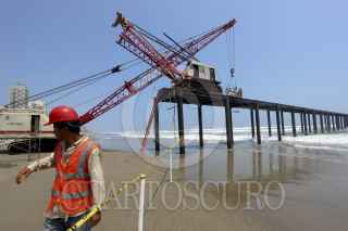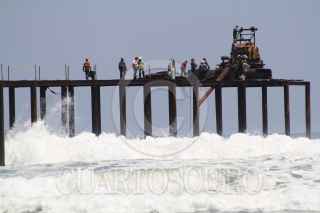 ACAPULCO, GUERRERO, 25MAYO2015.- Integrantes de la cooperativa 13 Estrellas acusaron que responsables de la empresa Oprinsa, contratada por la Secretaría de Marina para derribar el muelle edificado en playa Revolcadero, en el punto conocido como Punto Muerto, cerraron el acceso a la playa desde el pasado 30 de abril, afectando a nueve familias debido al cierre parcial de su fuente de sustento, que es un restaurante y la renta de servicios de playa. Los afectados acusaron que este lunes autoridades de la Marina quienes se miraron en la entrada Procuraduría Federal de Protección al Ambiente (Profepa) y la Secretaría del Medio Ambiente y Recursos Naturales (Semarnat) los dejaron plantados, en un una reunión que se tenía programada para llevarse a cabo en el Palacio Federal, en el centro de la ciudad. Representantes de la cooperativa reprocharon que “nos quieren matar de hambre y ni siquiera han podido comenzar a retirar los pilotes debido al oleaje”, y advirtieron que existe la intención de privatizar las playas, pues en los últimos 15 años otros cuatro accesos han prácticamente desaparecido. FOTO: BERNANDINO HERNÁNDEZ /CUARTOSCURO.COM