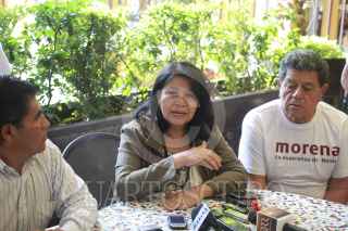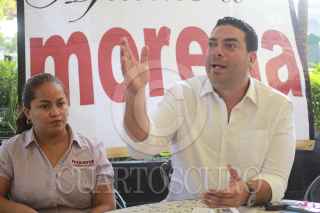 CUERNAVACA, MORELOS, 26MAYO2015.- Eduardo Beltrán, candidato a diputado local y Silvia Salazar, presidente municipal de Jiutepec e integrantes de MORENA ofrecieron una rueda de prensa donde denunciaron que han sido agredidos diferentes candidatos de distintos municipios de este partido. FOTO: PATRICIA MORALES /CUARTOSCURO.COM