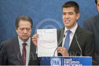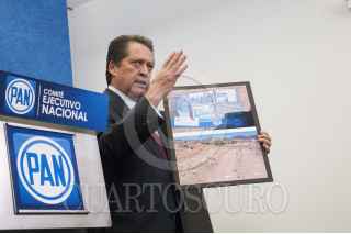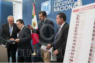 MÉXICO, D.F., 27MAYO2015.- José Isabel Trejo Reyes, secretario general del PAN, encabezó una conferencia en compañía del diputado federal del PAN, Juan Pablo Adame; Jorge Inzunza, asesor de campaña del candidato a la gubernatura de Huixquilucan, Enrique Vargas, y Bernardo González, del comité del partido en Coahuila, para hablar sobre algunas irregularidades durante los periodos de campaña para las elecciones del 7 de junio. FOTO: DIEGO SIMÓN SÁNCHEZ /CUARTOSCURO.COM