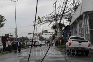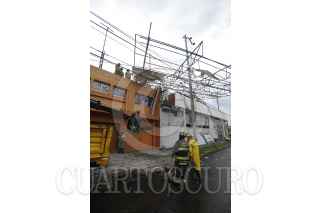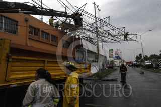 MÉXICO, D.F., 27MAYO2015.- Sobre avenida Vallejo y Poniente 128 en la delegación Gustavo A. Madero cayo un espectacular por los fuertes vientos que se registraron esta tarde en la ciudad. FOTO: ARMANDO MONROY /CUARTOSCURO.COM