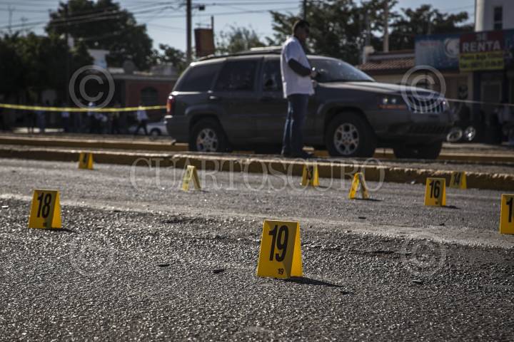 CULIACÁN, SINALOA, 27MAYO2015.- Tras una persecución por el concurrido bulevar Benjamín Hill, fueron asesinadas dos personas por sujetos fuertemente armados, las víctimas fueron identificadas como Hipólito Barra Páez de 25 años de edad y Edrin Cepeda Cota de 32 años los cuales, viajaban abordo de una camioneta tipo Cherokee, en el lugar peritos localizaron decenas de casquillos para diferente calibre así como una pistola calibre .9mm que portaba uno de las víctimas, al terminar las investigaciones, el conocido padre Jeringas acudió al lugar para bendecir a las personas asesinadas. FOTO:RASHIDE FRIAS / CUARTOSCURO.COM