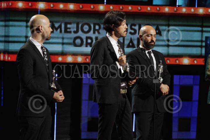 MÉXICO, D.F., 27MAYO2015.- Alfonso Ruizpalacio recibió el Ariel a Mejor Director de manos de Jorge Fons, durante la ceremonia de la 57 Entrega del Ariel a lo más destacado de la cinematografía nacional. FOTO: ISAAC ESQUIVEL /CUARTOSCURO.COM