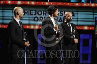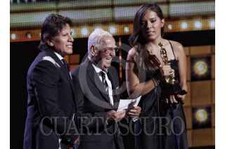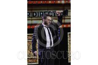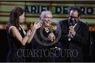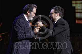MÉXICO, D.F., 27MAYO2015.- Alfonso Ruizpalacio recibió el Ariel a Mejor Director de manos de Jorge Fons, durante la ceremonia de la 57 Entrega del Ariel a lo más destacado de la cinematografía nacional. FOTO: ISAAC ESQUIVEL /CUARTOSCURO.COM
