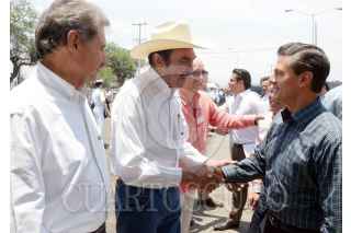 VISTA HERMOSA, MICHOACAN, 28MAYO2015.- El Presidente Enrique Peña Nieto dio aquí el banderazo de salida a contenedores de carga de la empresa SuKarne dirigidos a distintos mercados internacionales, en un acto en el que afirmó que “México se ha convertido ya en una potencia pecuaria que brilla, luce y se proyecta al mundo entero”. FOTO: PRESIDENCIA /CUARTOSCURO.COM