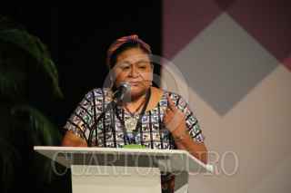 ACAPULCO, GUERRERO, 29MAYO2015.- Rigoberta Menchú exhortó a los guerrerenses a ejercer el voto, previo al discurso que dio la ganadora del premio Nobel de la Paz, también guardo un minuto de silencio por los 43 normalistas desaparecidos, pidió a los electores no vender su voto “por una dádiva” y recordó a las victimas de la violencia en el estado de Guerrero., durante una conferencia organizada por el Instituto Nacional Electoral (INE) en Acapulco. FOTO: BERNANDINO HERNÁNDEZ /CUARTOSCURO.COM