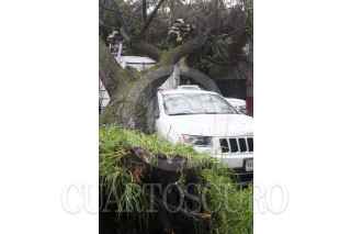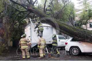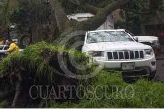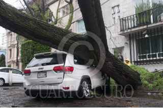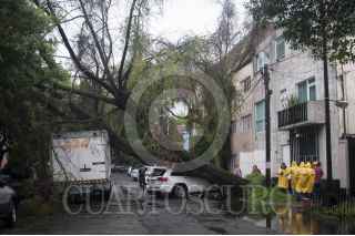 MÉXICO, D.F., 29MAYO2015.- La fuerte lluvia y el intenso viento provocó que de nueva cuenta se cayera un árbol en la colonia Condesa, esta vez en la calle de Zamora casi esquina con Francisco Márquez. Bomberos acudieron a quitar el árbol que mide más de 20 metros y bloqueo toda la calle. FOTO: DIEGO SIMÓN SÁNCHEZ /CUARTOSCURO.COM