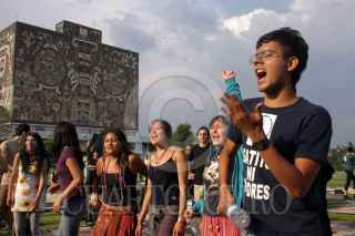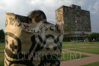 MEXICO, D.F. 29ABRIL2006.- Alumnos de la Escuela Nacional de Artes Plásticas se manifestaron frente a la torre de Rectoría en C.U. por la posible reelección de su actual directora Luz del Carmen Vilchis. FOTO: Cristina Aguilar/CUARTOSCURO.COM