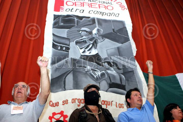MÉXICO D.F. 29ABRIL2006.- El Subcomandante Insurgente Marcos, Delegado Zero del EZLN, asistio al Primer Encuentro Nacional Obrero, donde se reuniéron miembros de diversos sindicatos y simpatizantes con el movimiento. FOTO: Guillermo Perea/CUARTOSCURO.COM