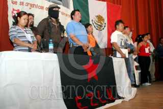MÉXICO D.F. 29ABRIL2006.- El Subcomandante Insurgente Marcos, Delegado Zero del EZLN, asistio al Primer Encuentro Nacional Obrero, donde se reuniéron miembros de diversos sindicatos y simpatizantes con el movimiento. FOTO: Guillermo Perea/CUARTOSCURO.COM