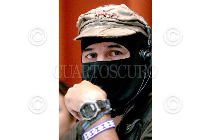 MÉXICO D.F. 29ABRIL2006.- El Subcomandante Insurgente Marcos, Delegado Zero del EZLN, asistio al Primer Encuentro Nacional Obrero, donde se reuniéron miembros de diversos sindicatos y simpatizantes con el movimiento. FOTO: Guillermo Perea/CUARTOSCURO.COM