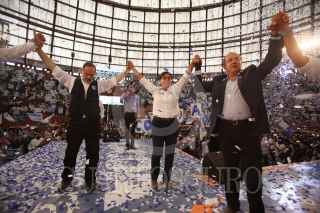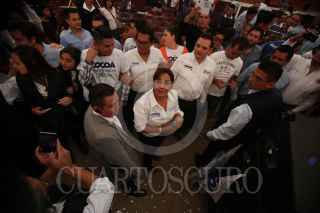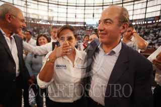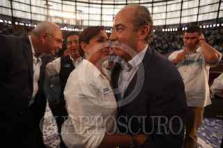 MORELIA, MICHOACÁN, 31MAYO2015.- Luisa María Calderón (Cocoa), cerró campaña en el Palacio del Arte, donde la acompaño su hermano el expresidente de la República, Felipe Calderón Hinojosa, y el líder nacional del PAN, Gustavo Madero Muñoz. FOTO: ALAN ORTEGA /CUARTOSCURO.COM