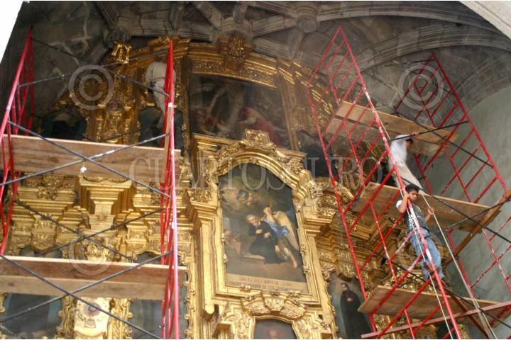 MÈXICO,D.F.3MAYO2006.- El dìa de "La Santa Cruz" albañiles continuaron las obras de construcciòn y de restauraciòn en la Catedral de la Ciudad de Mèxico. Foto: M. Tulia Pèrez Bocanegra/CUARTOSCURO.COM
