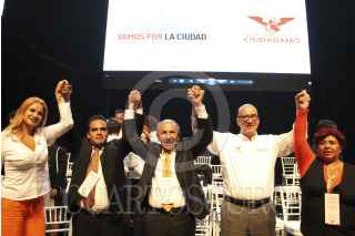 MÉXICO, D.F., 01JUNIO2015.- Dante Delgado, presidente de Movimiento Ciudadano, acompaño a candidatos a diputados locales, federales y jefes delegacionales al cierre de campaña en el teatro metropolitan. FOTO: CUARTOSCURO.COM