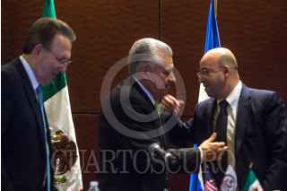 MÉXICO, D.F., 02JUNIO2015.- Anthony Wayne, Embajador de Estados Unidos en México, Renato Sales Heredia, coordinador nacional antisecuestro y David Garay Maldonado durante la inauguración de la “III Conferencia Internacional anti Pandillas”. FOTO: ENRIQUE ORDÓÑEZ /CUARTOSCURO.COM