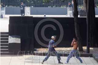 MÉXICO, D.F., 02JUNIO2015.- Dos jovenes pelean en los alrededores del Monumento a la Revolución. FOTO: ENRIQUE ORDÓÑEZ /CUARTOSCURO.COM