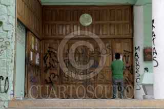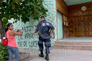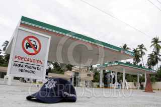 COYUCA DE BENITEZ, GUERRERO, 02JUNIO2015.- Se enfrentaron presuntos normalistas con policias municipales del Ayuntamiento, durante el enfrentamiento se escucharon disparos de arma de fuego, y en una gasolinera quedó tendido un policía que fue asaltada, el oficial fue trasladado al hospital de la región en estado grave. FOTO: BERNANDINO HERNÁNDEZ /CUARTOSCURO.COM