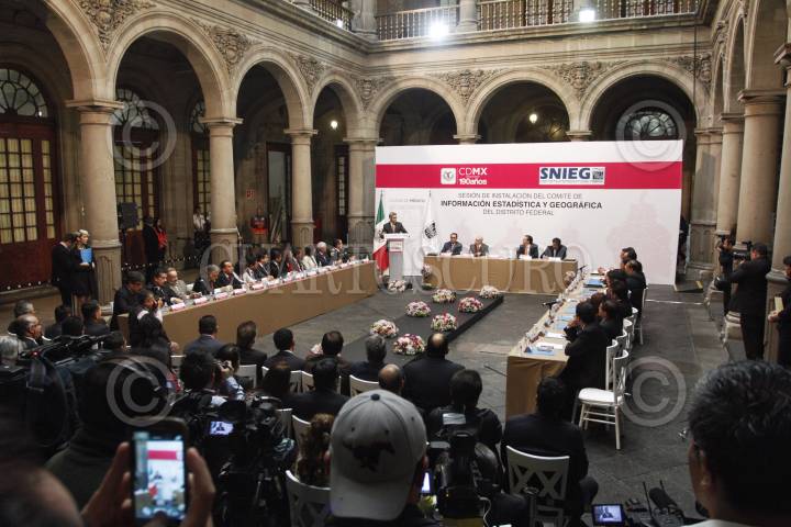 MÉXICO, D.F., 03JUNIO2015.- Eduardo Sojo, titular del INEGI, Miguel Ángel Mancera, jefe de Gobierno del D.F., y Salomón Chertorivsky, secretario de Desarrollo Económico, durante la sesión de instalación del Comité de Información Estadística y Geografía del Distrito Federal. FOTO: ISAAC ESQUIVEL /CUARTOSCURO.COM