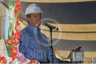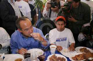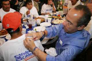 MÉXICO D.F. 03MAYO2006.- Felipe Calderon, candidato de Acción Nacional a la presidencia, aprovechó para firmar la playera de un albañil, durante la celebración del día del Albañil, en Tlaltelolco. FOTO: Nelly Salas/CUARTOSCURO.COM