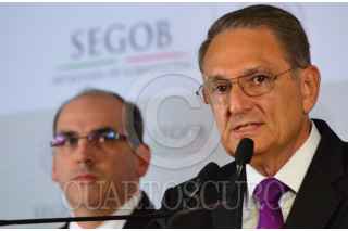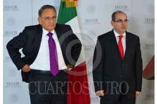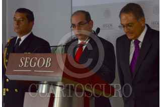 MÉXICO, DF., 03JUNIO2015.- Luis Felipe Puente Espinosa, coordinador nacional de Protección Civil de la a Secretaria de Gobernación, y Roberto Ramírez Parra, de la Comisión Nacional del Agua (CONAGUA), ofrecieron una conferencia de prensa en donde informaron que "Blanca" evolucionará a Tormenta Tropical, o Huracán categoría 1 dentro de las próximas 24 horas. El fenómeno meteorológico aún permanece en fase estacionaria. Baja California Sur es uno de los estados que permanecen en alerta debido a las grandes cantidades de lluvia que se tiene previsto que caigan sobre el territorio; además de los fuertes vientos que correrán de los 100 a los 120 km. por hora. FOTO: MARÍA JOSÉ MARTÍNEZ /CUARTOSCURO.COM