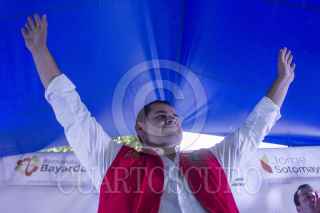 MÉXICO, D.F., 02JUNIO2015.- Xiuh Tenorio candidato del PRI-PVEM a la jefatura delegacional en Benito Juarez, realizó su cierre de campaña en la explanada delegacional. FOTO: ENRIQUE ORDÓÑEZ /CUARTOSCURO.COM