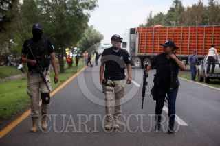 PÁTZCUARO, MICHOACÁN, 03JUNIO2015.- Elementos de la Fuerza Rural de este municipio bloqueron durante el día, exigiendo la liberación de sus compañeros detenidos en Cotija y Ario de Rosales. FOTO: ALAN ORTEGA /CUARTOSCURO.COM