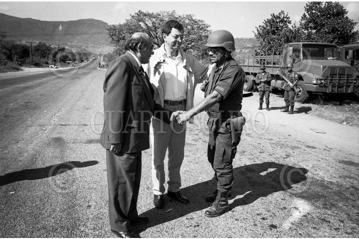 MÉXICO, D.F., 05JUNIO2015.- El senador Manuel Camacho Solís, murió esta madrugada se sabe que padecía de cáncer cerebral desde hacía un año, el político nació en la ciudad de México el 30 de marzo de 1946, de formación priista fue egresado de la Facultad de Economía de la UNAM. Camacho Solís fue elegido por el presidente Carlos Salinas de Gortari como comisionado para la paz durante el levantamiento armado del EZLN en el año de 1994, Regente de la Ciudad y candidato a la presidencia por el Partido del Centro Democrático. En la imagen Camacho Solís, el ex Presidente Carlos Salinas de Gortari y ex gobernador de Yucatán, Víctor Cervera Pacheco, el 5 de Agosto de 1990. FOTO: ARCHIVO/ ELOY VALTIERRA /CUARTOSCURO.COM