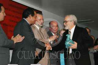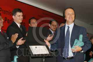 MÉXICO D.F. 03MAYO2006.- Los periodístas Jesús Blancornelas, Silvia Cherem Sacal y Pablo Hiriart, durante la entrega del Premio Nacional de Periodismo 2005, en las instalaciones del World Trade Center. FOTO: Diego Gallegos/CUARTOSCURO.COM
