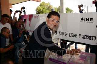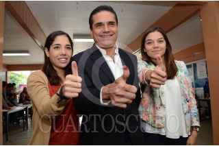ZITÁCUARO, MICHOACÁN, 07JUNIO2015.- Silvano Aureoles Conejo, emitió su voto acompañado de sus hijas Sofía y Elizabeth. FOTO: CUARTOSCURO.COM