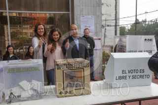 MÉXICO, D.F. 07JUNIO2015.- El expresidente de México, Felipe Calderón Hinojosa, acudió a votar esta mañana a una casilla ubicada en la colonia Las Aguilas, al Sur de la Ciudad. Acompañado de su esposa, Margarita Zavala y su hija María; Calderón destapó a su esposa para la presidencia nacional del PAN. FOTO: JUAN PABLO ZAMORA /CUARTOSCURO.COM