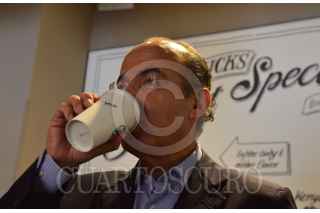 MÉXICO, D.F., 07JUNIO2015.- El ex presidente Felipe Calderón, acompañado por su esposa Margarita Zavala, hizo una parada en un café de la zona después de acudir a la casilla correspondiente a votar ubicada en la colonia Las Águilas, en la delegación Álvaro Obregón. Al acercarse al mostrador pidió un "doble alto capuchino", posteriormente se retiró de la cafetería. FOTO: MARÍA JOSÉ MARTÍNEZ /CUARTOSCURO.COM