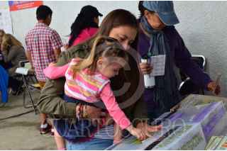 MÉXICO, D.F., 07JUNIO2015.- Polimnia Romana, candidata a la delegación Álvaro Obregón por la coalición PRI-PVEM, emitió su sufragio mientras cargaba a su pequeña hija, en la casilla situada en el número 15 de la Calle 3. Antes de retirarse mencionó ante medios de comunicación que "espero que ninguna situación irregular se presente y que todos los ciudadanos, en especial los vecinos de esta delegación, acudan a ejercer el derecho de votar libremente". FOTO: MARÍA JOSÉ MARTÍNEZ /CUARTOSCURO.COM