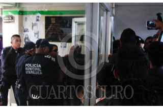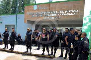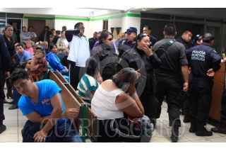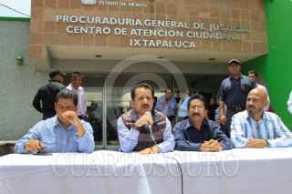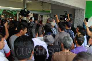 IXTAPALUCA, ESTADO MÉXICO., 07JUNIO2015.- Militantes del PRD se manifestaron en las instalaciones del Ministerio Público de Ixtapaluca tras la detención de 30 perredistas que se encontraban en casillas electorales, entre los detenidos se encuentran un menor de edad y dos reporteras que se encontraban realizando su labor periodistica. Ante lo sucedido el senador del PRD Luis Sánchez acompañado de los candidatos y abogados del partido asistieron al ministerio público para brindad asistencia legal. Por algunos momentos familiares de los detenidos intentaron entrar a la fuerza a las instalaciones de la PGJEM, policías municipales y de la SSC resguardaron los accesos e impidieron que ingresaran. FOTO: SAÚL LÓPEZ /CUARTOSCURO.COM