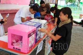 MÉXICO, D.F., 07JUNIO2015.- Miles El instituto Nacional Electoral coloco en las principales plazas públicas casillas infantiles para fomentar el voto electoral cuando los niños la mayoría de edad. FOTO: SAÚL LÓPEZ /CUARTOSCURO.COM