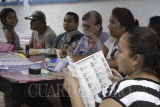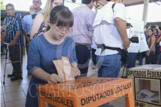 VILLAHERMOSA, TABASCO, 07JULIO2015.- Una joven con capacidades especiales ayuda a su madre para emitir su sufragio en la capital tabasqueña. FOTO: MARCO POLO GUZMÁN HERNÁNDEZ/CUARTOSCURO.COM