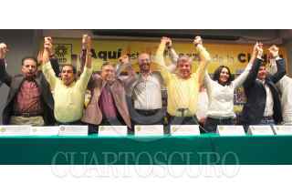 MÉXICO, D.F., 07JUNIO2015.- Jesús Ortega, José Luis Muñoz Soria, candidato a Jefe Delegacional de Cuauhtémoc, Enrique Vargas Anaya, secretario general del PRD-D.F., David Razu, candidato a Jefe Delegacional de Miguel Hidalgo, Raúl Flores, líder del PRD-D.F., y Dione Anguiano, candidata a la jefatura delegacional de Iztapalapa, ofrecieron conferencia de prensa para declararse como virtuales ganadores de la elección. FOTO: CUARTOSCURO.COM
