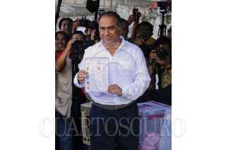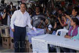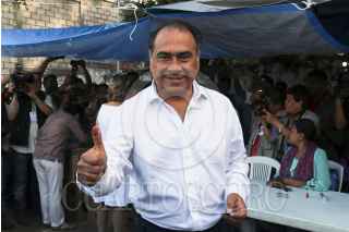 CHILPANCINGO, GUERRERO, 07JUNIO2015.- Héctor Astudillo, candidato a gobernador por el PRI, acudió a la casilla correspondiente en donde emitió su voto. En la imagen, muestra la boleta electoral. FOTOS: JOSÉ I. HERNÁNDEZ /CUARTOSCURO.COM