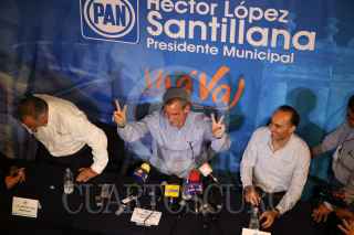 LEON, GUANAJUATO, 07JUNIO2015.- El candidato a la alcaldía por el PAN en León Héctor López Santillana se declaró ganador y celebró junto con sus simpatizantes en el comité municipal del PAN. FOTO: GERARDO M. GARCÍA /CUARTOSCURO.COM