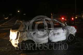 TINGAMBATO, MICHOACÁN, 08JUNIO2015.- Cuando parecía que el día de la jornada electoral concluiría sin incidentes, estalló el conflicto en la Meseta Purépecha. Anoche, estudiantes normalistas le prendieron fuego a dos vehículos a manera de presión al gobierno del estado para que atienda sus demandas. En la carretera Uruapan-Paracho, los estudiantes quemaron un camión de una empresa panificadora, mientras que en la carretera libre Pátzcuaro-Uruapan, a la altura del entronque conocido como San Juan Tumbio, incendiaron una unidad propiedad de una refresquera. FOTO: JUAN JOSÉ ESTRADA SERAFÍN /CUARTOSCURO.COM