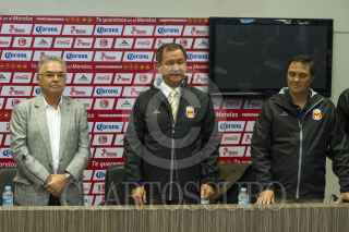 MORELIA, MICHOACÁN.- 08JUNIO2015.- El equipo de Primera División de Monarcas Morelia, presentó al técnico Enrique Meza en las instalaciones del Estadio Morelos, que afrontara la próxima temporada en la que el equipo michoacano se disputará el descenso. En la presentación estuvieron presentes el directivo Álvaro Dávila y un miembro de cuerpo técnico Daniel Ípata. FOTO: CUARTOSCURO.COM