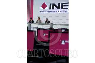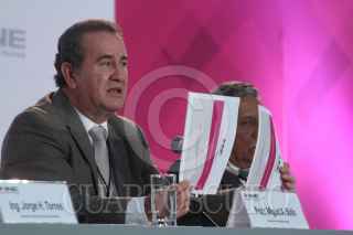 MÉXICO, D.F., 09JUNIO2015.- El programa de Resultados Electorales Preliminares (PREP) concluyo sus operaciones, dando paso al inicio de los conteos distritales programados para el miércoles y se espera dar los resultados para el día 14 de este mismo mes. Armando Calleja, director de sistemas; Jorge H. Torres, coordinador de la unidad técnica de servicios de información; Miguel A. Solís, director ejecutivo de organización electoral y Gerardo Martínez director de estadística y documentación electoral, son quienes presidieron la conferencia para dar a conocer los detalles de los “Computos Distritales”. FOTO: ISABEL MATEOS /CUARTOSCURO.COM