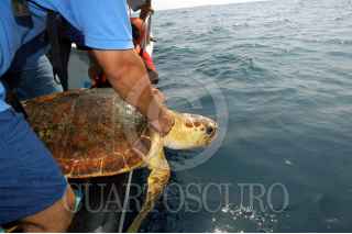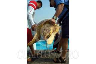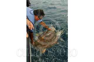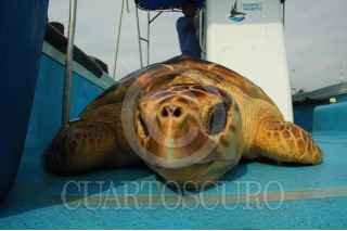 VERACRUZ, VERACRUZ 04MAYO2006.- Despues de haber sido rescatadas y permanecer cinco meses en cautiverio dentro de las Instalaciones del acuario de Veracruz, esta mañana fueron devueltas al mar dos tortugas de la especie Caguama. FOTO: Isaac Aguilar/CUARTOSCURO.COM