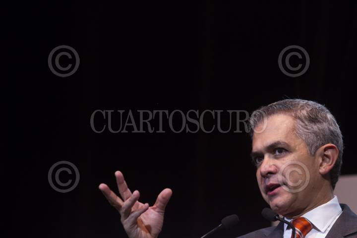 MÉXICO, D.F., 10JUNIO2015.- Miguel Ángel Mancera, Jefe de Gobierno, es abrazado por una asistente a la ceremonia de arranque del programa de turismo social "Sonrisas por tu Ciudad 2015" en el Teatro Metropolitan. FOTO: MOISÉS PABLO /CUARTOSCURO.COM